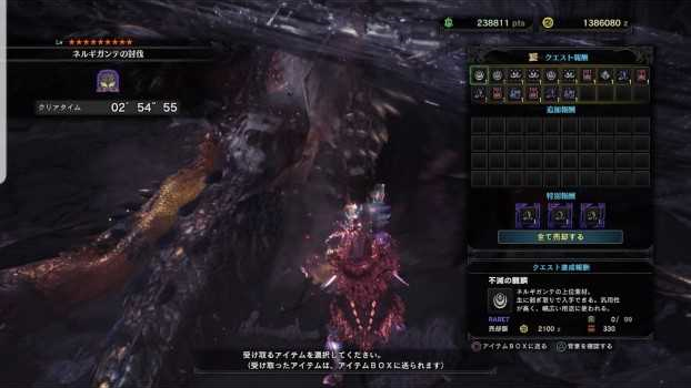上記装備・スキル構成で大型モンスターとの戦闘を楽しみつつ、事前準備した装備構成等に問題は無いか?モンスターの動きの確認も同時に行う。