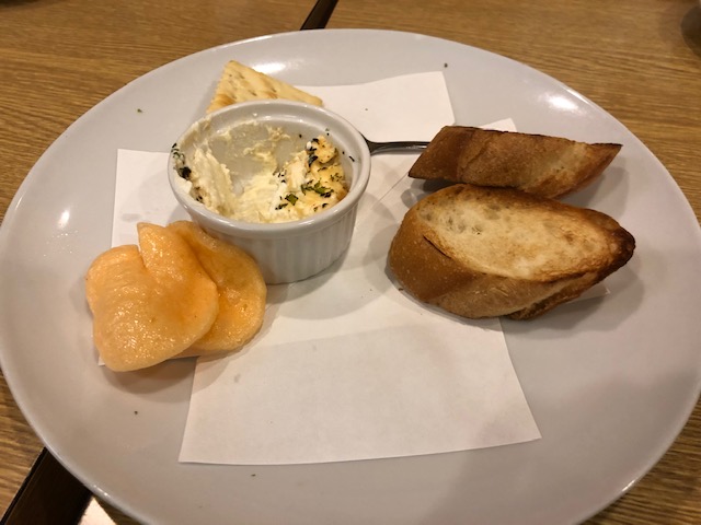 前菜はクリームチーズディップとシーザーサラダ。