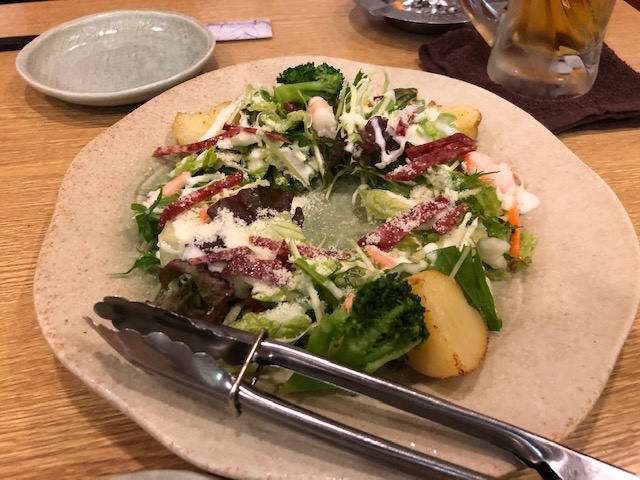 シーザーサラダは定番の感じで、チーズディップはオシャレな感じのメニューでした。