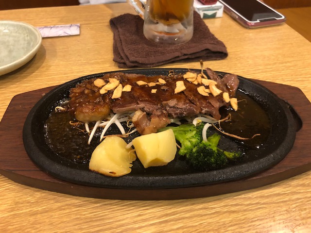 メインの料理はガーリックステーキが来ました。