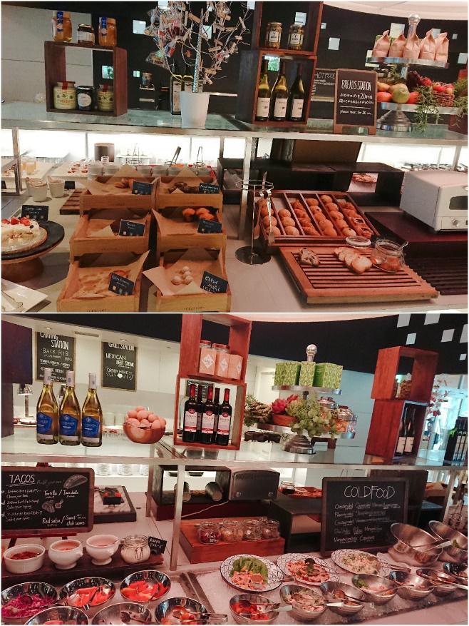 パンコーナー・サラダコーナー・スープコーナー・和洋中、ブッフェアイテムは60種類以上。多彩なメニューが有り、おしゃれに飾られた料理達をまず目で楽しむことができました!