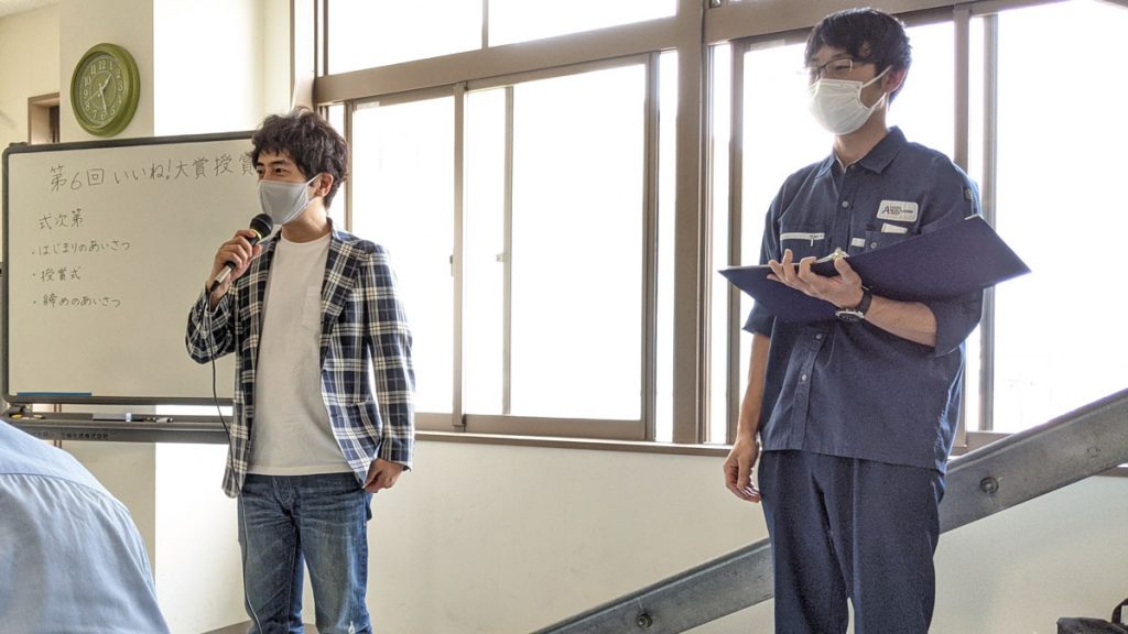 2021年5月9日に、横浜工場食堂にて第6回いいね!大賞授賞式が行われました。前回と同様に新型コロナウイルス感染拡大防止策としてソーシャルディスタンス確保のため、会場へのご参加は関係者のみとさせていただきました。