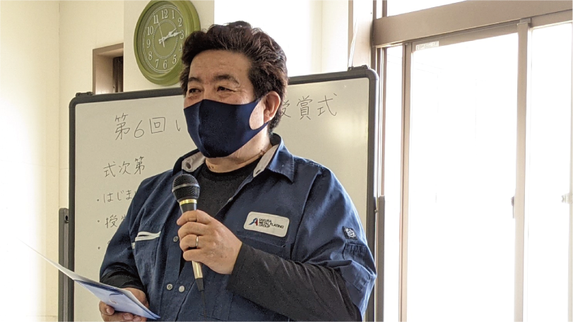 「今日はこのような賞をいただいてありがとうございます。私は現場にいますが、普段力もなくてあまり重たいものも持てなくて、正直自分は役に立っているのかなと思いながら働いていますが、日ごろご指導いただき、支えてくださっている皆さんのおかげで今日この場に立てたんだなと、感謝の思いでいっぱいです。今後ともより一層努力して、頑張ってまいります。どうぞよろしくお願いいたします。ありがとうございました。」
