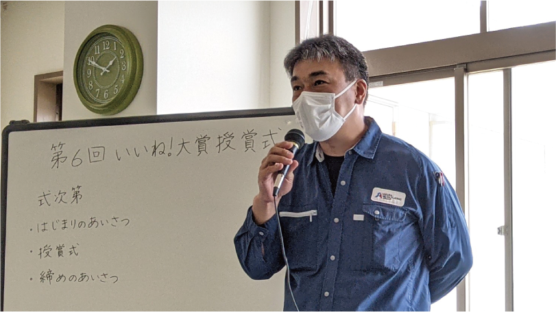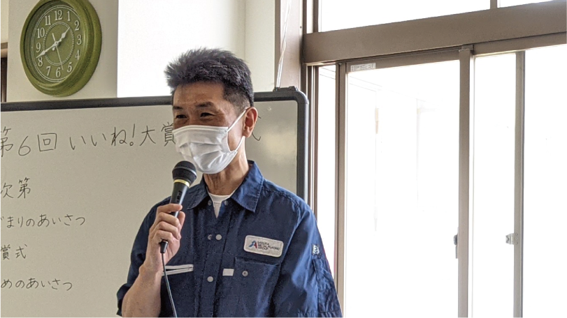「皆さんお疲れ様です。今日を迎えるにあたって、いいね!大賞の委員、スタッフの皆さん、いつも本当にお疲れ様です。今年も滞りなく、場所は横浜工場ですけど、すごくいい、いいね!大賞の式典だったと思います。